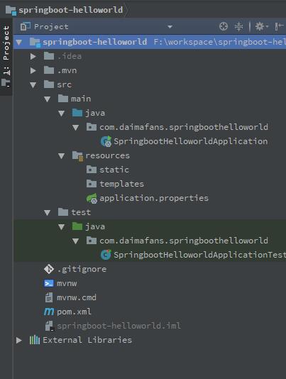 SpringbootHelloworldApplication 类是 SpringBoot 的启动类,有个 main 方法,可以直接通过 run as 运行项目。