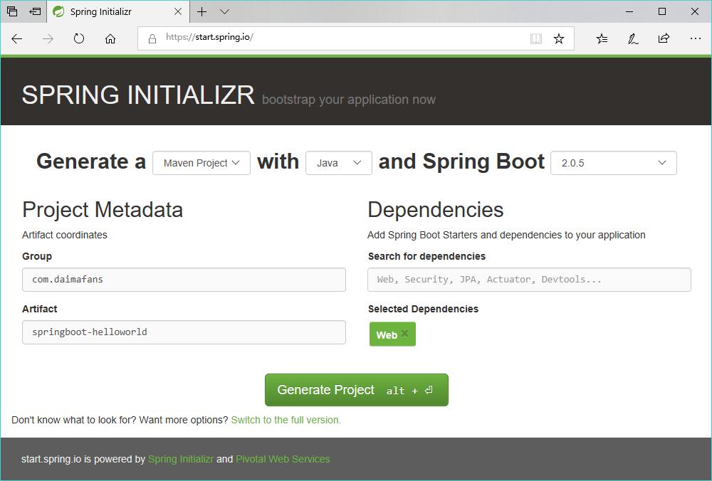 - 使用 Spring 官网 SPRING INITIALIZR 来构建项目,地址:http://start.spring.io/